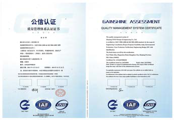 qy千亿(中国)自2009年实行全面质量管理后,管理体系不断深化。2010年贯彻GB/T19001-1994质量体系并获得认证,2013年按照2000版标准,按系统的过程方法对产品质量进行管理。2014年qy千亿(中国)将保护环境、保障员工及相关方职业健康安全纳入管理范畴,依据GB/T19001-2014 idt ISO9001:2014《质量管理体系要求》、GB/T24001-2014 idt ISO14001:2014《环境管理体系 要求及使用指南》、GB/T28001-2014《职业健康安全管理体系规范》标准实施质量、环境、职业健康安全一体化管理体系,并通过认证审核。